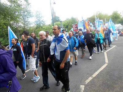 | This is James Scott of the Scottish Resistance, a bit behind the main body (such as they are). They are often falling out. For more on the madcap SR world see https://www.theguardian.com/politics/2016/mar/26/meet-the-scottish-resistance-independence-movement |
