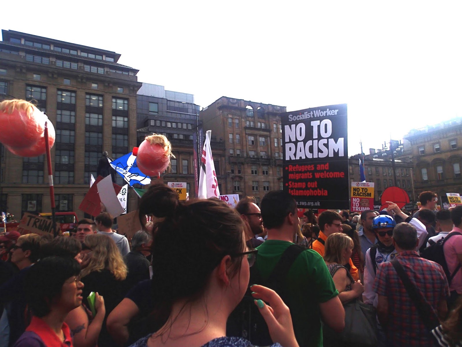 Today is Friday 13 July, 2018, and we are in George Square for demonstrations against Donald Trump’s visit to the UK